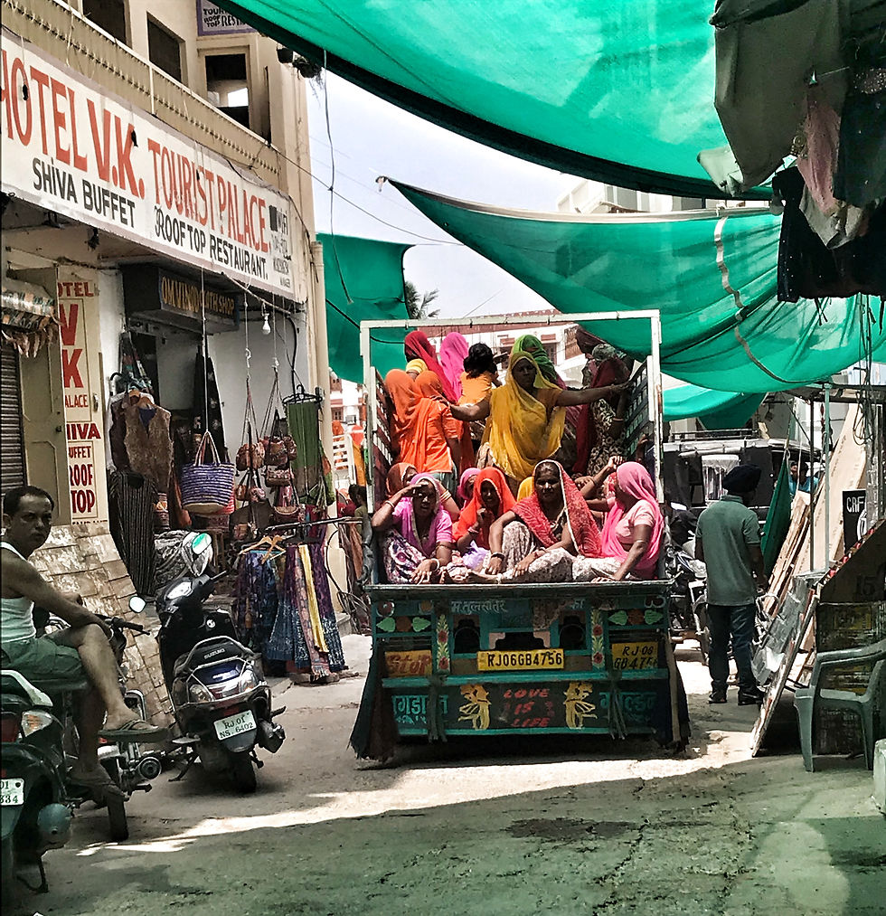 We did it the next morning, as hundreds of women came to town to celebrate the full moon. The women arrived in trucks, those commonly used to transport cattle, but this time full of women dressed in very colorful sarees.